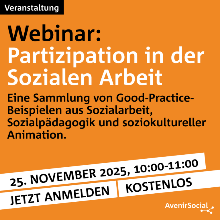 Berufsverband Soziale Arbeit Schweiz Mitglied werden AvenirShop Berufsverband Soziale Arbeit Schweiz 11.11.2025 Mitglieder Webinar: Partizipation in der Sozialen Arbeit Nach einer ersten Verbandsbroschüre zur Definition, professionsethischen und gesetzlichen Grundlagen der Partizipation hat AvenirSocial eine zweite Broschüre veröffentlicht. Sie widmet ... 03.11.2025 Wer wir sind Wir bieten: Hochschulpraktikum Verantwortliche*r Fachliche Grundlagen (80%) Unser Verantwortlicher Fachliche Grundlagen Tobias Kuchen wird nächstes Jahr von Februar bis Juli im Vaterschaftsurlaub sein. Deshalb bieten wir für ... 27.10.2025 Was wir tun Stellungnahme zum Paket «Stabilisierung und Weiterentwicklung der Beziehungen Schweiz-EU» AvenirSocial begrüsst das Stabilisierungspaket Schweiz–EU grundsätzlich, sofern der Lohnschutz gesichert bleibt. Der Verband unterstützt die Verbesserungen bei Lohn- und Kündigungsschutz ... 23.10.2025 Was wir tun Rencontres du R.E.S.T.E – Travail social et enjeux écologiques : trois rendez-vous pour penser un monde écosocial (FR) Le Réseau Suisse Romand de Travail EcoSocial (RESTE) réunit praticien·ne·s, chercheur·euse·s et représentant·e·s d’institutions autour des liens entre travail social ... Werbung 23.10.2025 Was wir tun Kanton Waadt: Stellungnahme zur Schliessung der Werkstätten der Stiftung Le Relais (FR) L’Association professionnelle suisse du travail social exprime sa profonde préoccupation face à la fermeture des ateliers de la Fondation le ... 21.10.2025 Was wir tun Kanton Aargau: Medienmitteilung gegen die Initiative «Arbeit muss sich lohnen» Der Grosse Rat des Kantons Aargau hat heute leider mehrheitlich die Initiative «Arbeit muss sich lohnen» befürwortet und empfiehlt, sie ... 13.10.2025 Was wir tun Stellungnahme zur 21. 449 n Pa. Iv. Kamerzin. Bei gemeinsamer elterlicher Sorge die alternierende Obhut fördern AvenirSocial unterstützt die alternierende Obhut bei gemeinsamer elterlicher Sorge, sofern das Wohl des Kindes im Mittelpunkt steht. Eine gesetzliche Verpflichtung ... 30.09.2025 Mitglieder Jetzt anmelden In den Bildungsmodulen 2025 beleuchten wir zentrale Aspekte der Sozialen Arbeit. Anschaulich, praxisorientiert – und in diesem Jahr auch online! ... 29.09.2025 Publikationen SozialAktuell: Kinder – Akteur*innen der Gesellschaft Kinder gestalten die (zukünftige) Gesellschaft aktiv mit – ob in der Familie, im Schulalltag, in ihrer Nachbarschaft oder auf globaler ... 23.09.2025 Was wir tun Stellungnahme über die Volksinitiative «Für die Gleichstellung von Menschen mit Behinderungen (InklusionsInitiative)» und indirekter Gegenvorschlag AvenirSocial mit dem Gegenvorschlag zur Inklusions-Initiative zutiefst unzufrieden. In der vorgeschlagenen Form erfüllt er die zentralen Forderungen der Initiative nur ... 15.09.2025 Was wir tun Unsere Positionen zu den Geschäften der Herbstsession 2025 Ja zur Vorlage 25.019 «Änderung des SchKG (Sanierungsverfahren für natürliche Personen)» – Für ein wirksames Sanierungsverfahren mit dreijähriger Abschöpfungsphase Zusammen ... 11.09.2025 Was wir tun Stellungnahme zur Verordnungsanpassungen aufgrund der Übernahme des EU-Migrations- und Asylpakts Für AvenirSocial darf die Umsetzung des EU-Migrations- und Asylpakts nicht zu einer Verschlechterung der Rechte der betroffenen Personen führen. Wir ... Werbung mehr
